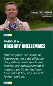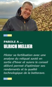 « Aujourd’hui, grâce aux études sur le cycle de l’azote menées depuis de nombreuses années, nous disposons de références fiables pour déterminer précisément les besoins en azote des betteraves qui vont être implantées sur chaque parcelle ». Pour établir le conseil de fertilisation azotée à la parcelle, en plus des reliquats azotés mesurés, les paramètres influant sur la mise à disposition d’azote pour la culture sont pris en compte : grâce à une feuille de renseignements complétée par l’agriculteur. Le conseil délivré s’appuie sur les différents paramètres du sol : le type de sol, la culture précédente, les apports organiques qui ont éventuellement déjà été faits sous forme de fumier, de vinasses ou de digestats par exemple, ainsi que la mise en place d’une culture intermédiaire (légumineuses, moutarde…) capable de capter l’azote et de le minéraliser sous l’action des microorganismes.
