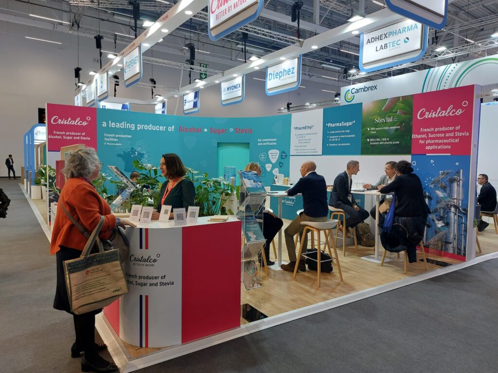 À Francfort, le CPHI, plus grand salon européen dédié à l’industrie pharmaceutique, a réuni plus de 60 000 visiteurs. « Tout le secteur était présent ! Pour notre équipe commerciale, c’est un moment stratégique, » souligne Laura Santini, Responsable commerciale alcool pharma. Notre offre complète y était présentée : PharmEthyl®, PharmaSugar®, PharmaStevial®, ainsi que la solution de régénération d’alcool de Dislaub.